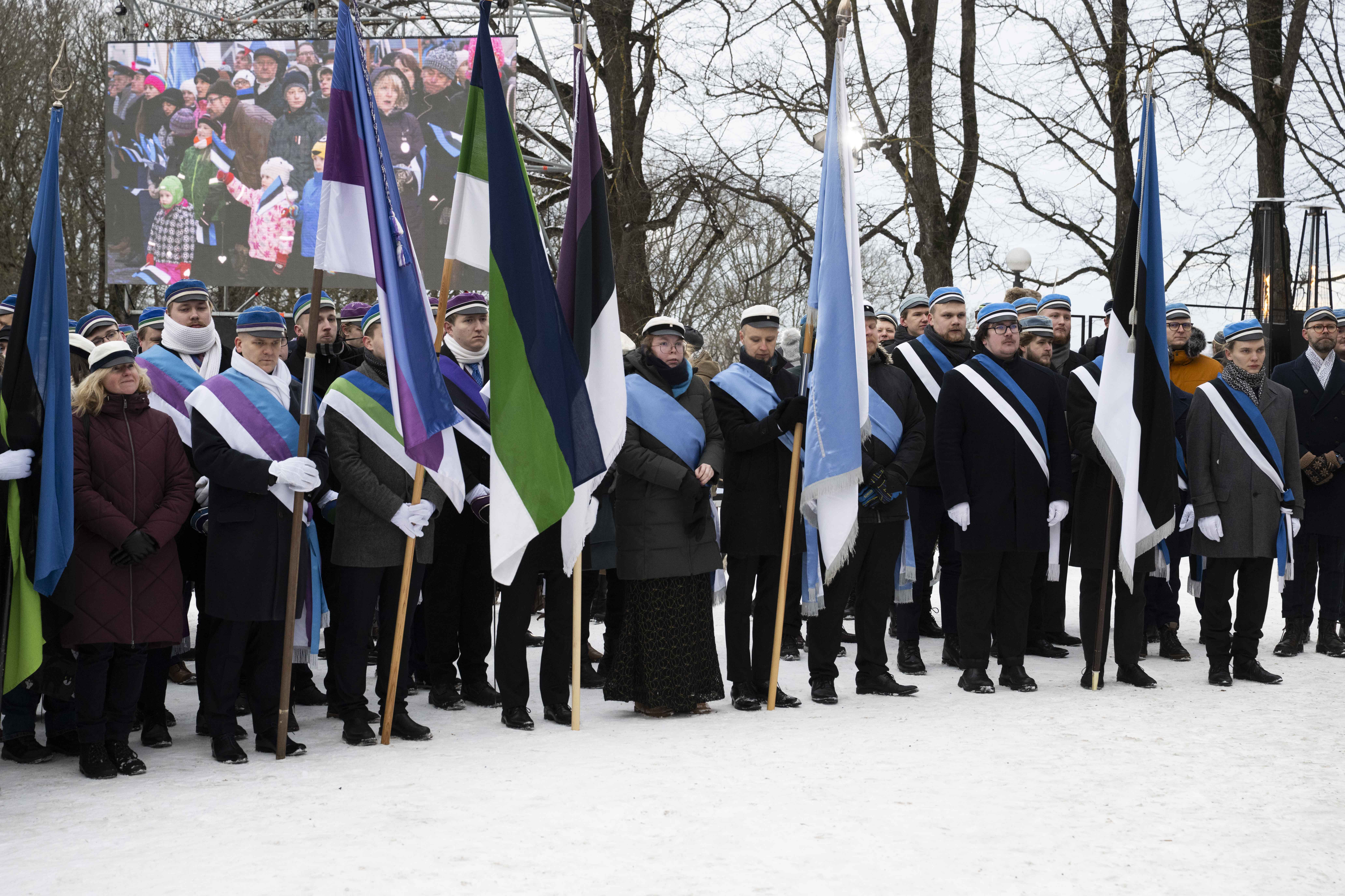 Eesti Vabariigi 108. aastapäeva tähistamine ja pidulik lipuheiskamistseremoonia Toompeal.
