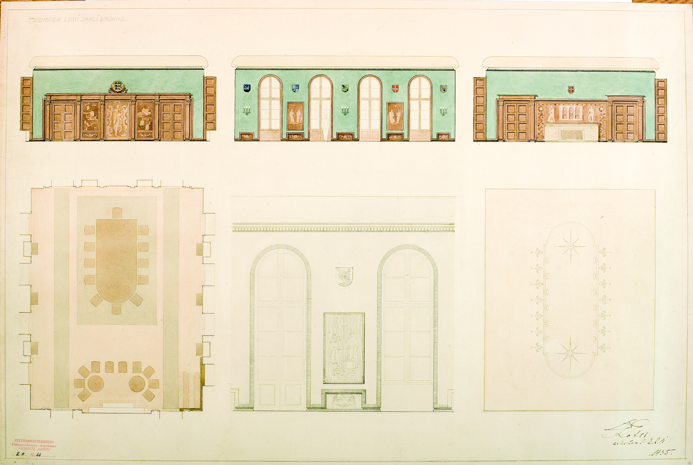 1820, Kubermangu valitsuse hoone fassaad ja 3.korruse plaan