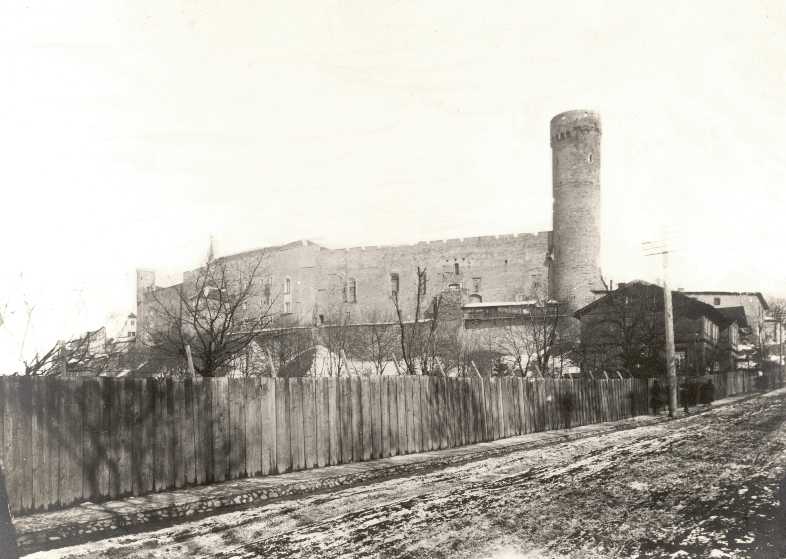 keskaegse konvendihoone põhjasein (1922.a. valminud Riigikogu hoone põhjasein on samas), vasakul taga on Landskrone torn, parema