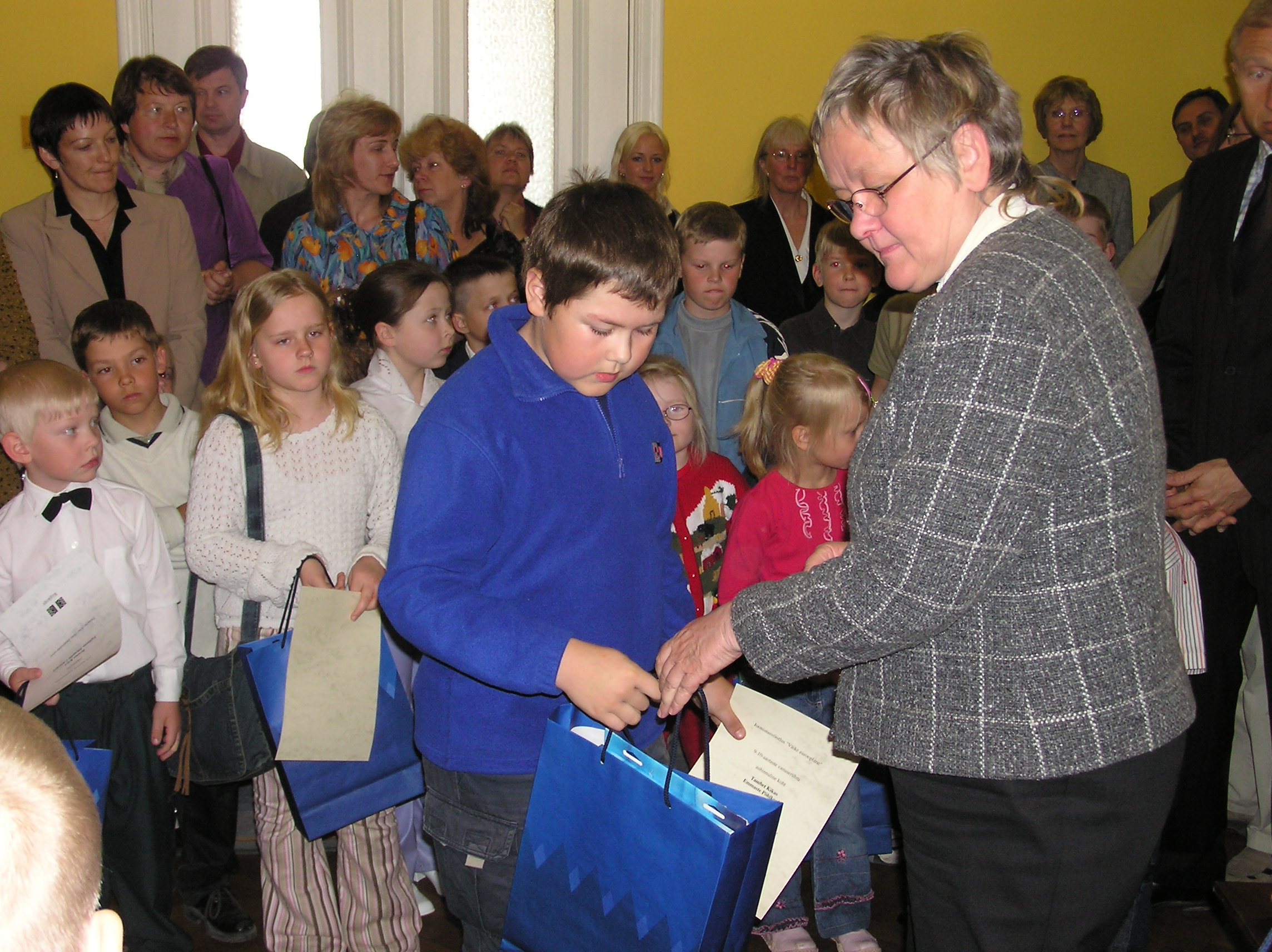 Riigikogu esimees Ene Ergma avas täna Toompea lossi lõunatiiva III korrusel laste joonistusvõistluse Väike eurooplane võidutööde näituse.
