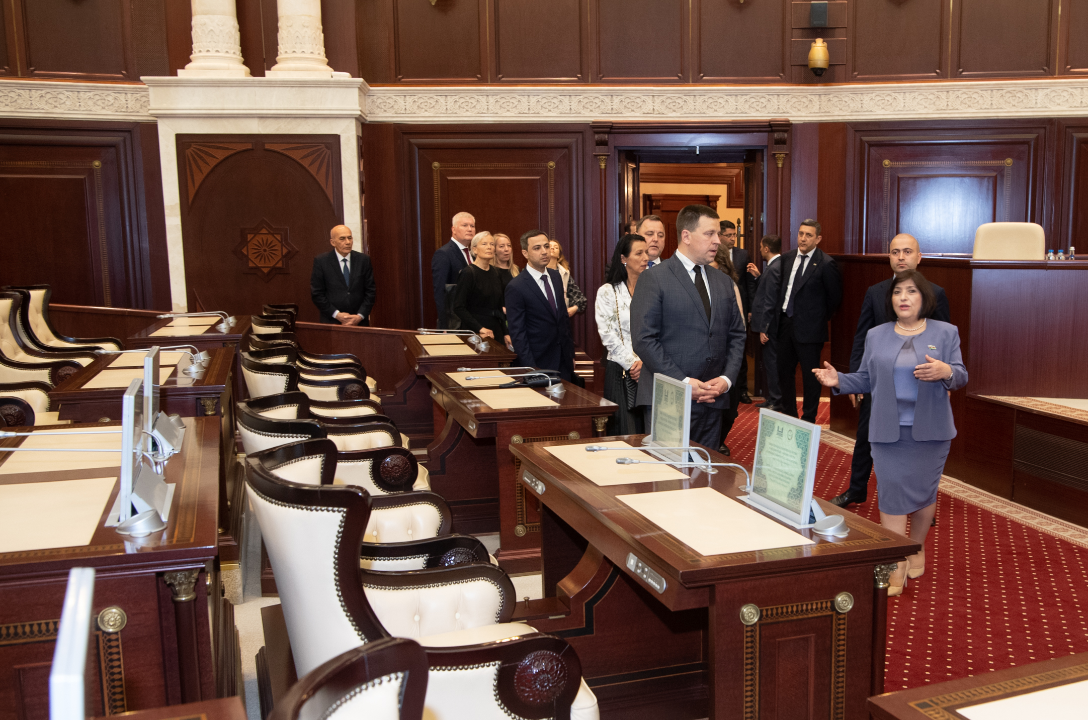 Aserbaidžaani parlamendi istungisaalis. Jüri Ratas, Sven Sester ja Yoko Alender