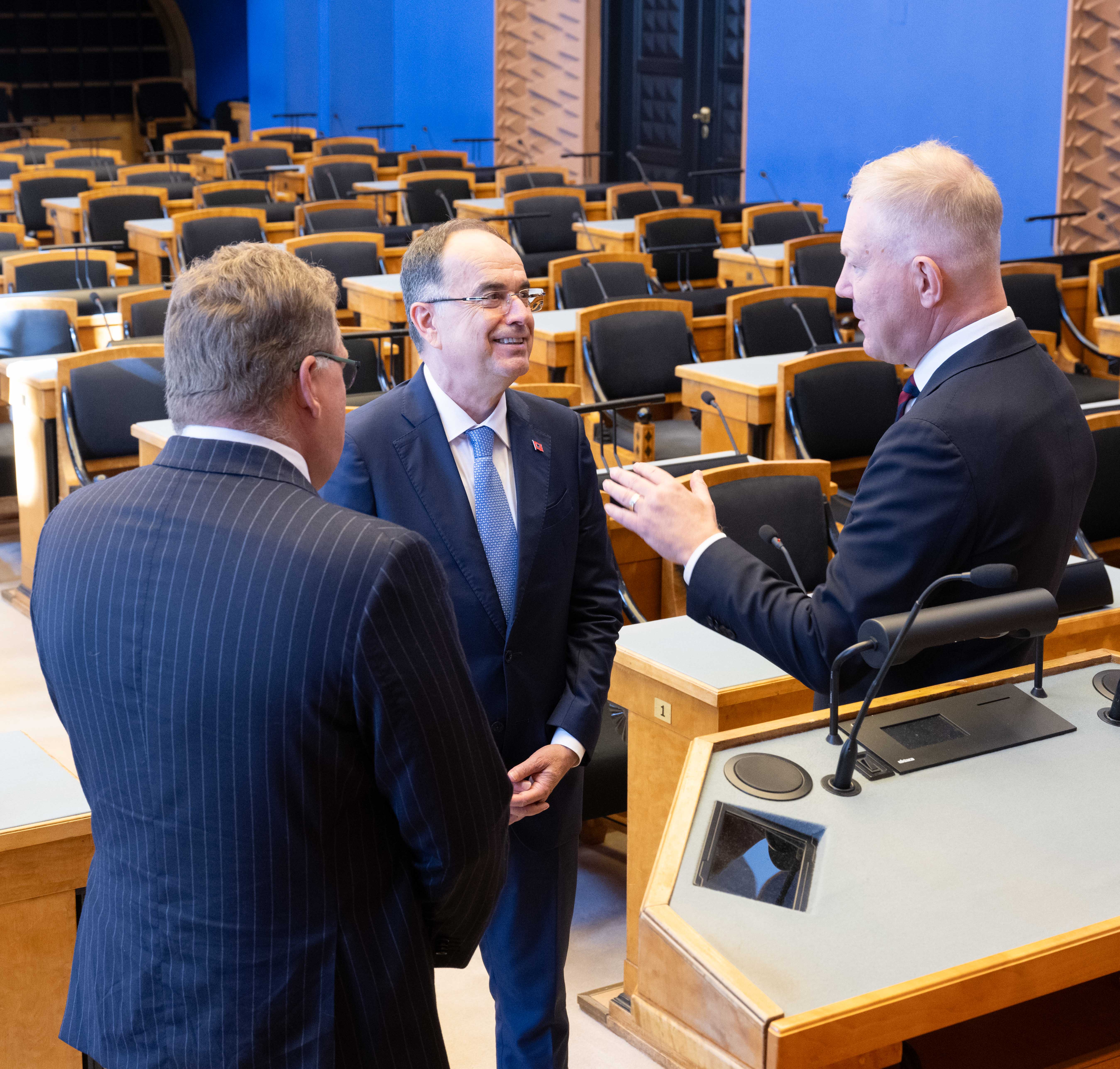 Riigikogu esimees Lauri Hussar, Albaania president Bajram Begaj ja Riigikogu väliskomisjoni esimees Marko Mihkelson
