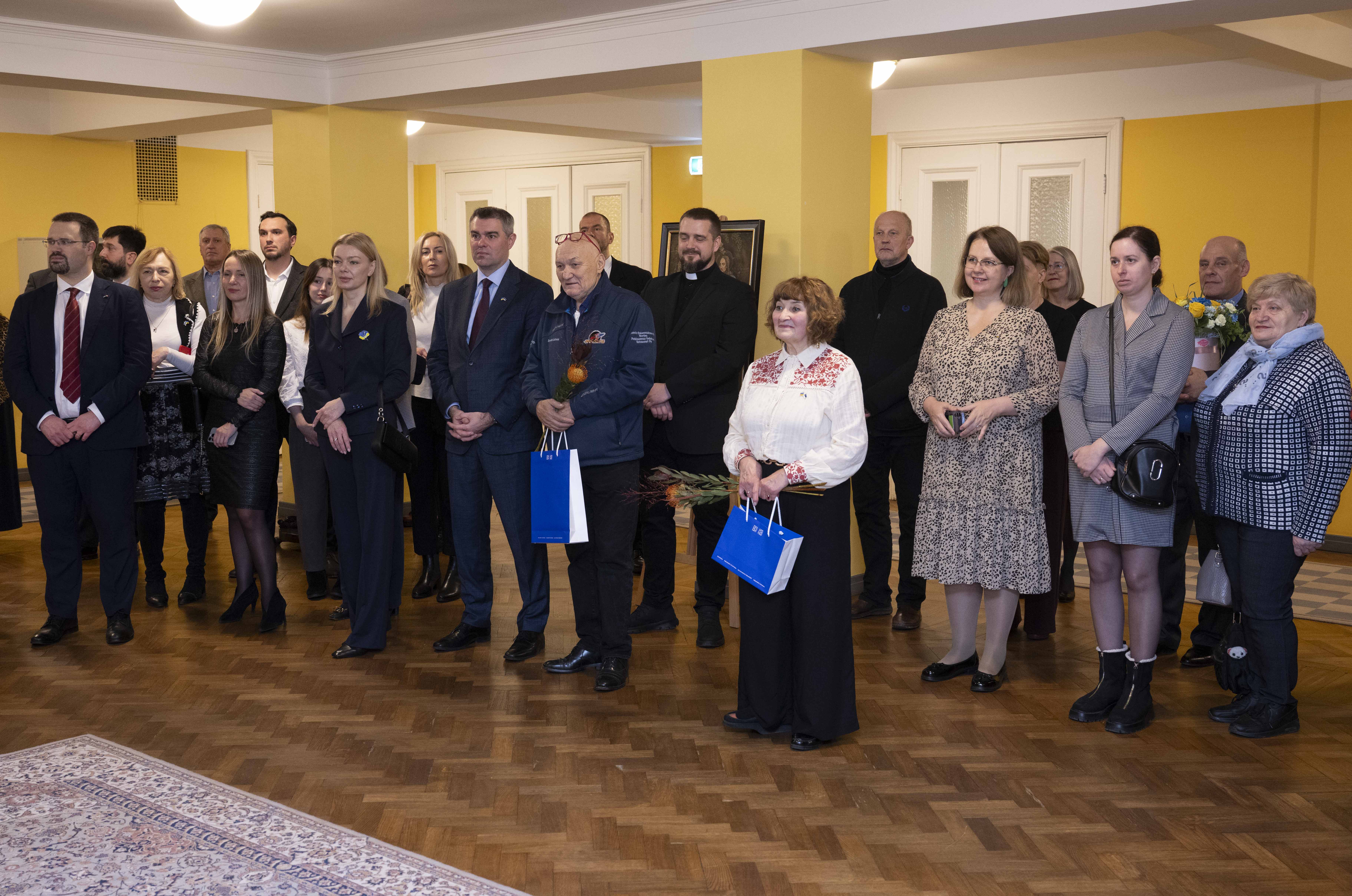 Näituse "Alistumatu Mariupol" avamissündmus. Riigikogu esimees ja Ukraina suursaadik Eestis.