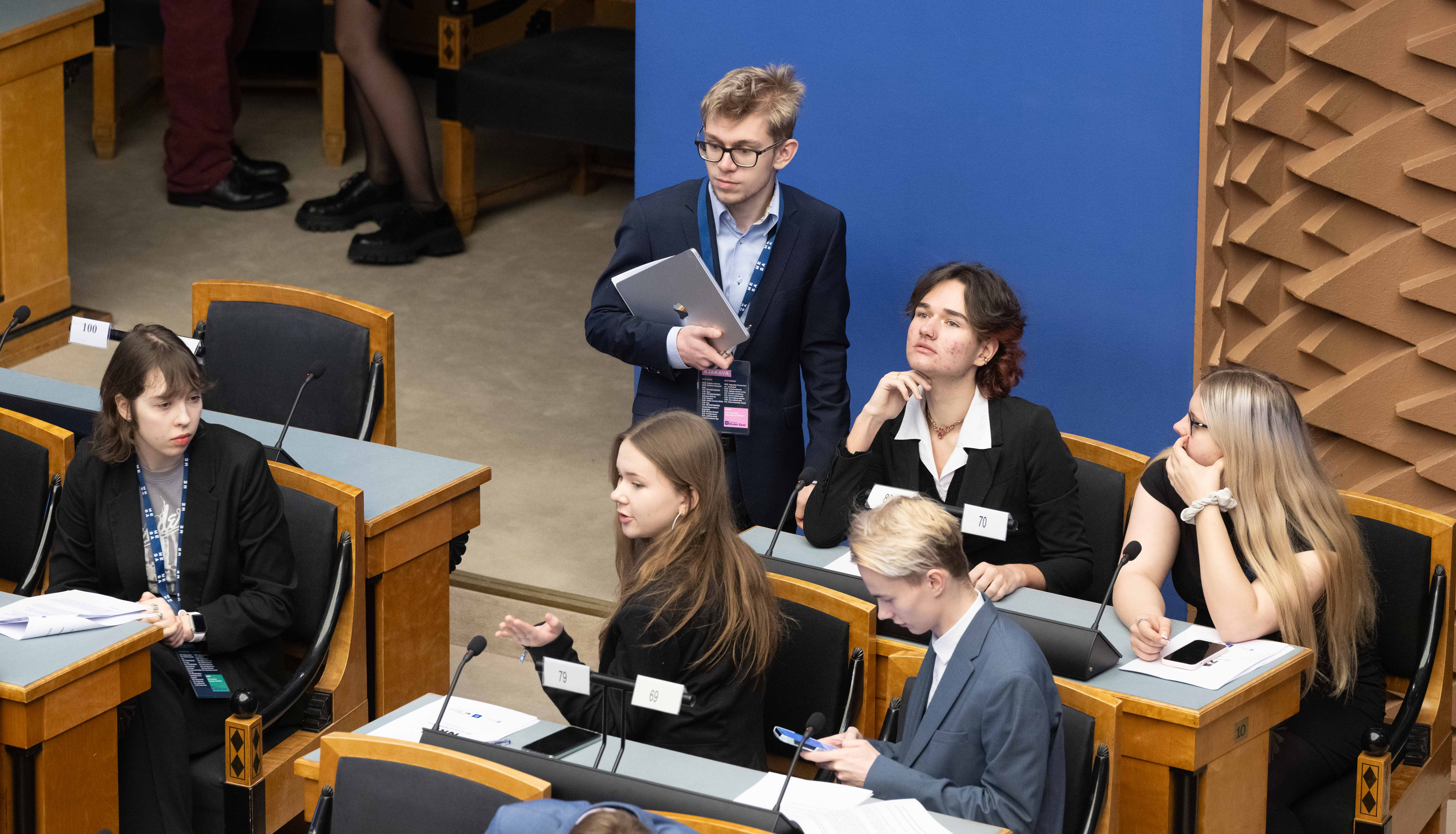 Riigikogu istungisaalis toimub kolmandat korda Noorte Riigikogu sessioon, millest võtab osa rohkem kui sada kooliõpilast ja tudengit üle Eesti.