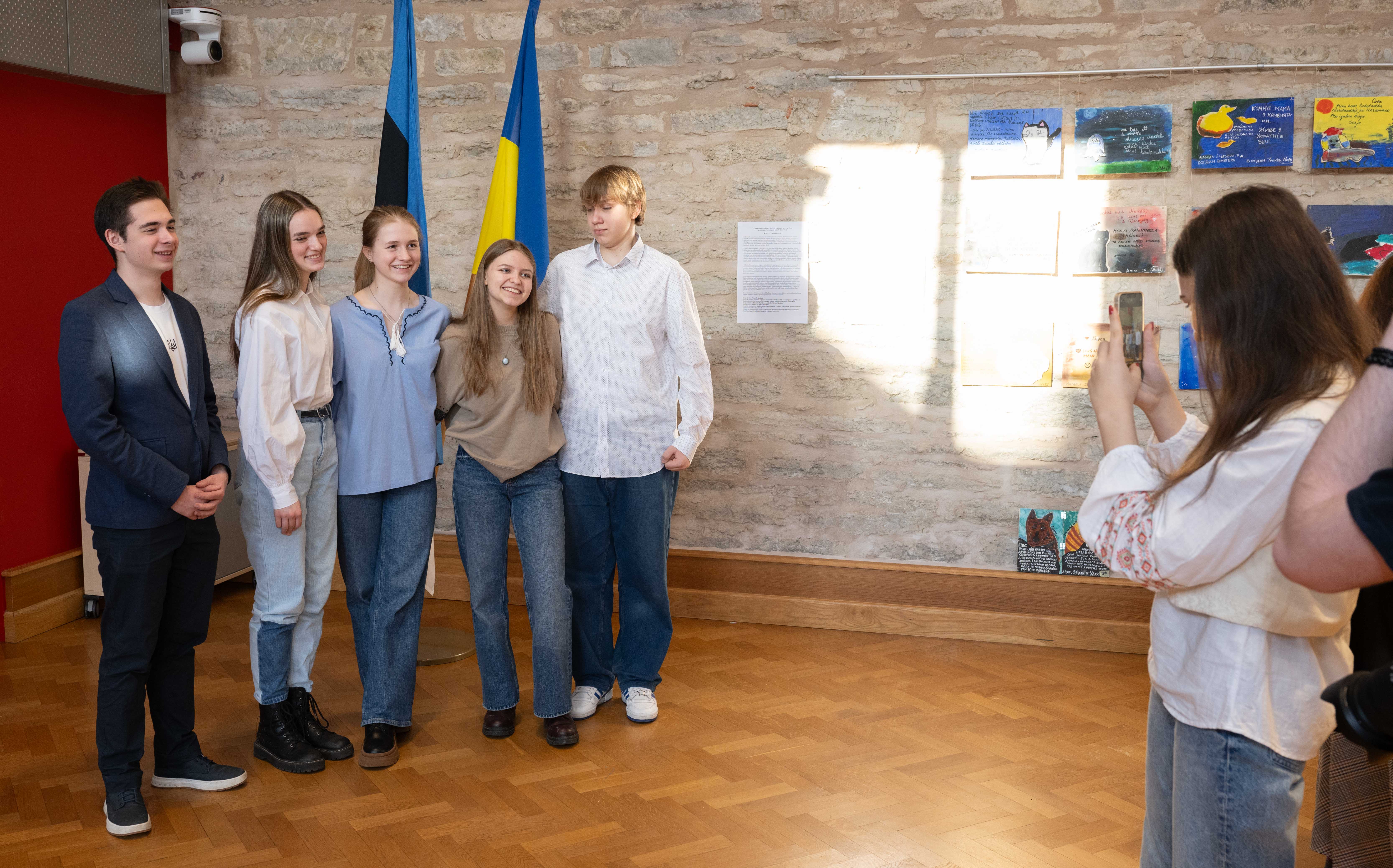 Eestis viibivate Ukraina sõjapõgenikest laste joonistuste ja mänguasjade näituse avamine Riigikogu konverentsisaalis.